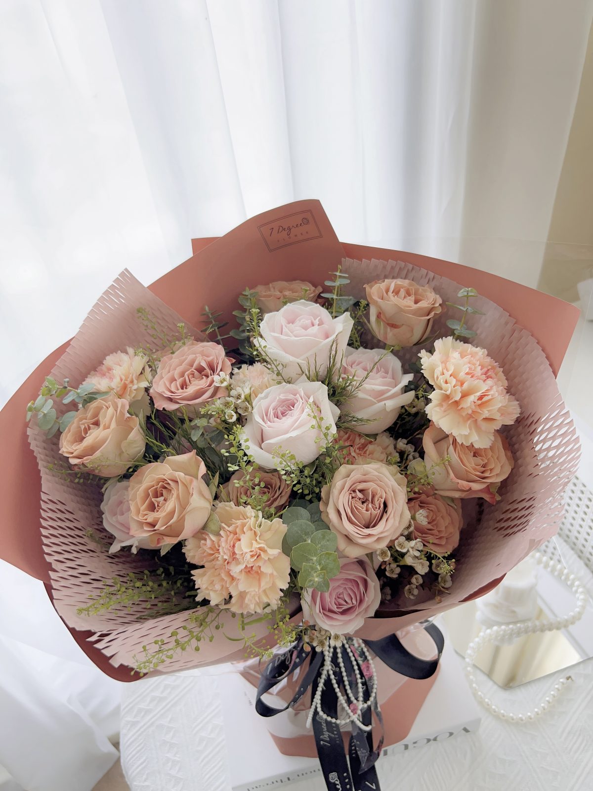 - 8 – 10 stalks Cappuccino Roses